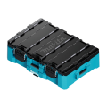 A Caixa de Ferramentas Grande Maktrak oferece máxima acessibilidade e resistência para uso profissional. Com 63 litros de capacidade e suporte para 45 kg, possui design horizontal ideal para ferramentas longas e abertura pelos dois lados, sem precisar remover caixas empilhadas. Fabricada em copolímero resistente a impactos, conta com travas metálicas reforçadas, punhos laterais amplos e encaixes bidirecionais para empilhamento modular.