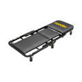 Material da esteira para mecânico: estrutura reforçada em metalon com base rígida em aglomerado, forrado com espuma e revestido com material sintético.