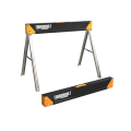 Suas pernas telescópicas permitem que o cavalete trabalhe em qualquer terreno. Também inclui pinos de suporte de material inovadores que permitem um corte fácil e seguro de materiais. Conta ainda com pés firmes fáceis de dobrar para uso em todas as superfícies e um mecanismo de abertura rápida, a configuração é direta e simples.