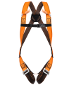 Possui argolas de aço em “D” na região dorsal, dois laços de poliéster na região peitoral, ponto de conexão dorsal e peitoral para proteção contra queda, fita sub-pélvica para sustentação de queda, fivelas duplas em aço para ajuste nas pernas e placas nas laterais em plástico para regulagem.