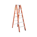 Fabricada em fibra de vidro e com degraus em alumínio, é durável e resistente, suportando até 120 kg. Possui sapatas de borracha para maior firmeza e catracas para travamento.