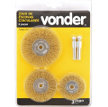 O jogo de escovas de aço circular Vonder são de ótima qualidade e durabilidade. Possui cerdas onduladas feitas em aço carbono latonado.
