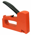 Além de grampear, funciona como aplicador de pinos. Possui uma alavanca reguladora de pressão, que precisa ser acionada para utilização em madeiras mais duras. Corpo em Termoplástico.