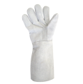 Feita em raspa, com acabamento em viés e costurada com linha de nylon, protege as mãos contra materiais cortantes, perfurantes e abrasivos. Possui reforço interno entre os dedos polegar e indicador.