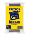 O prego com cabeça Gerdau é resistente, versátil e de excelente qualidade. Utilizado na construção civil em estruturas temporárias, caixarias, porteiras, marcenaria, etc. Possui ponta tipo diamante e cabeça cônica axadrezada.