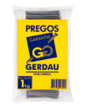 O prego com cabeça Gerdau é resistente, versátil e de excelente qualidade. Utilizado na construção civil em estruturas temporárias, caixarias, porteiras, marcenaria, etc. Possui ponta tipo diamante e cabeça cônica axadrezada.