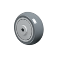 Roda com revestimento em composto termoplástico com PVC e núcleo em polipropileno copolímero reciclável. Oferece rodagem macia e silenciosa, garantindo proteção ao piso. Possui excelente resistência química, boa durabilidade contra desgaste e impactos, proporcionando ótima relação custo-benefício.